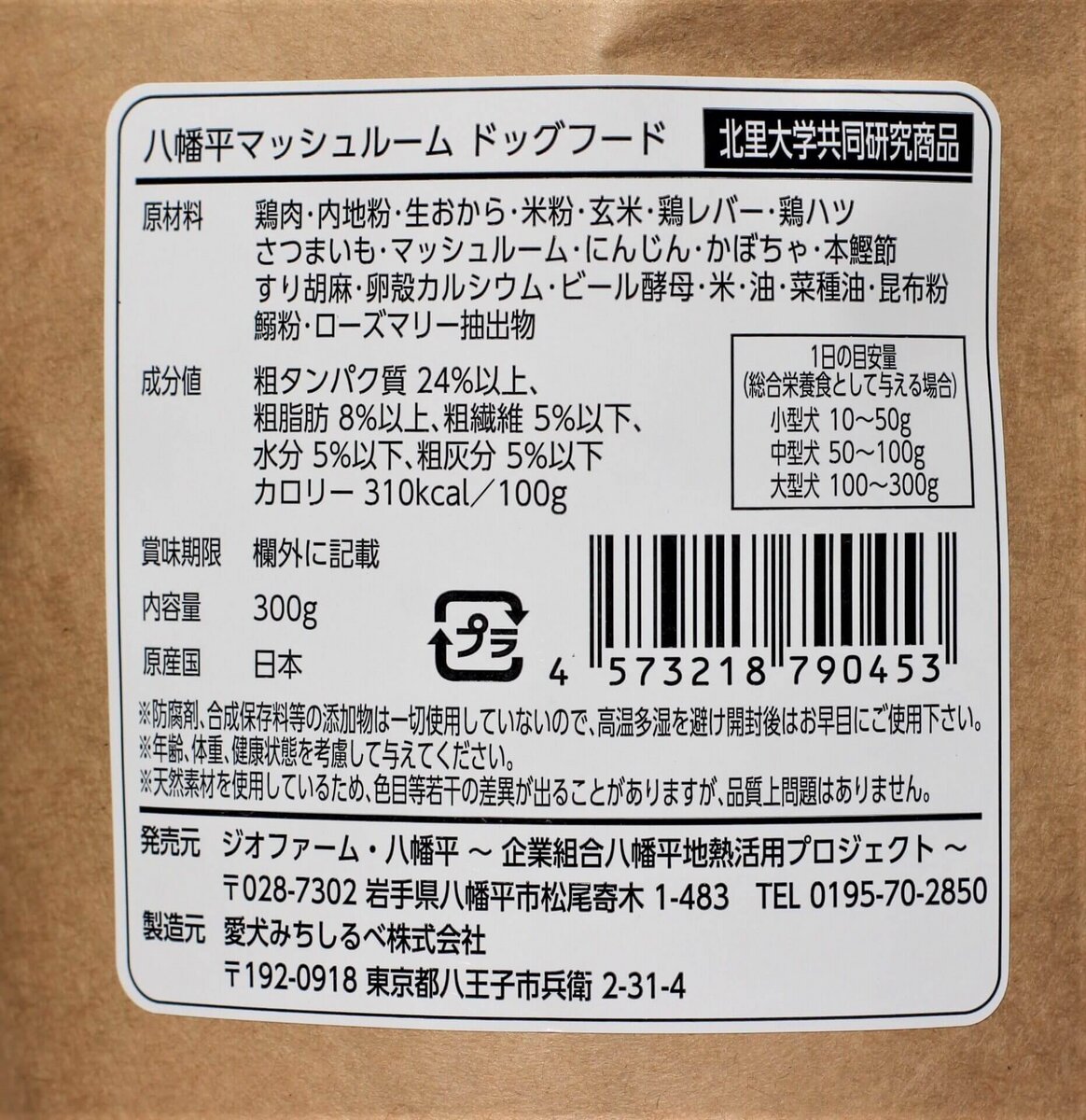 愛犬の健康を気にしている皆様にとって、少しでもお役にたてれば幸いです。 【 原材料 】 鶏肉、内地粉、生おから、米粉、玄米、鶏レバー、鶏ハツ、さつまいも、マッシュルーム、にんじん、かぼちゃ、本鰹節、すり胡麻、卵殻カルシウム、ビール酵母、米、油、菜種油、昆布粉、いわし粉、ローズマリー抽出物 【 成分値・100g当たり 】 粗たん白質:24%以上 粗脂肪:8%以上 粗繊維:5%以下 粗灰分:5%以下 水分:5%以下 【 カロリー 】 310kcal /100g 【 給餌量の目安 】(1日当たり) 小型犬 : 10~50g : 中型犬 : 50~100g : 大型犬 : 100~300g